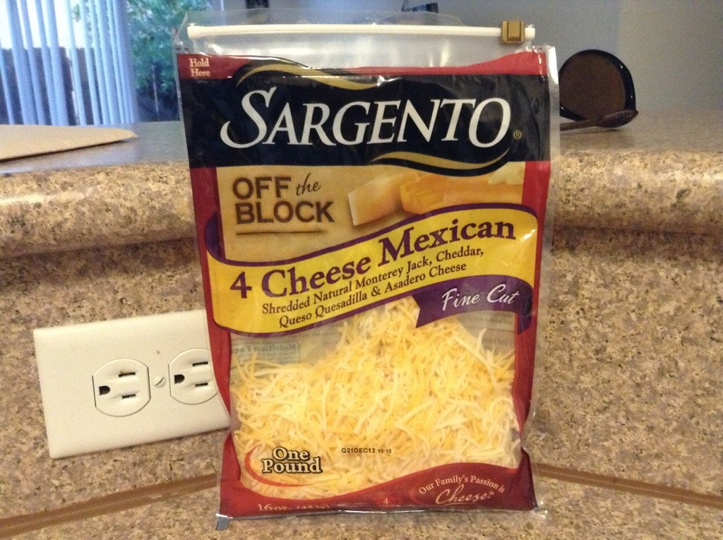 If you don’t like spicy things you can use a can of chiles of the same size. Next comes the cheese. I bought a 16oz package and used about 3/4 of it.